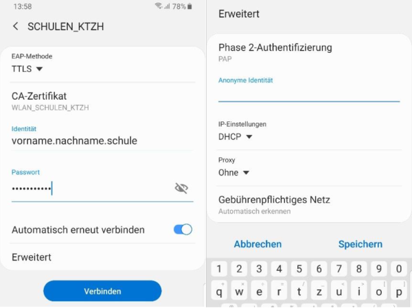 Zertifikat: keine oder WLAN_SCHULEN_KTZH
